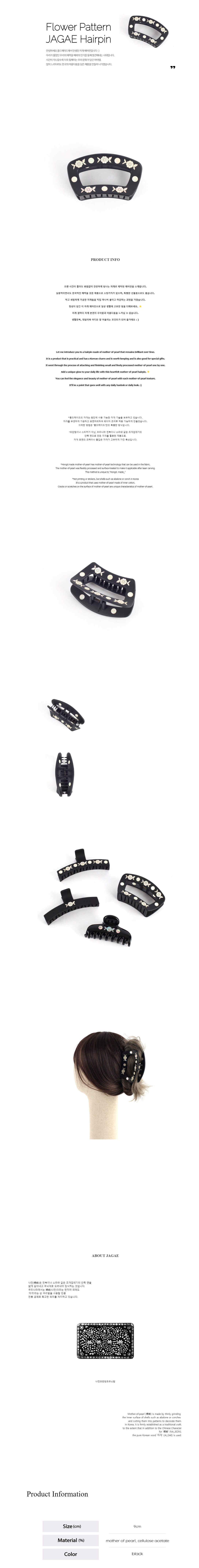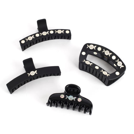 꽃문양 자개장식 사각 집게핀