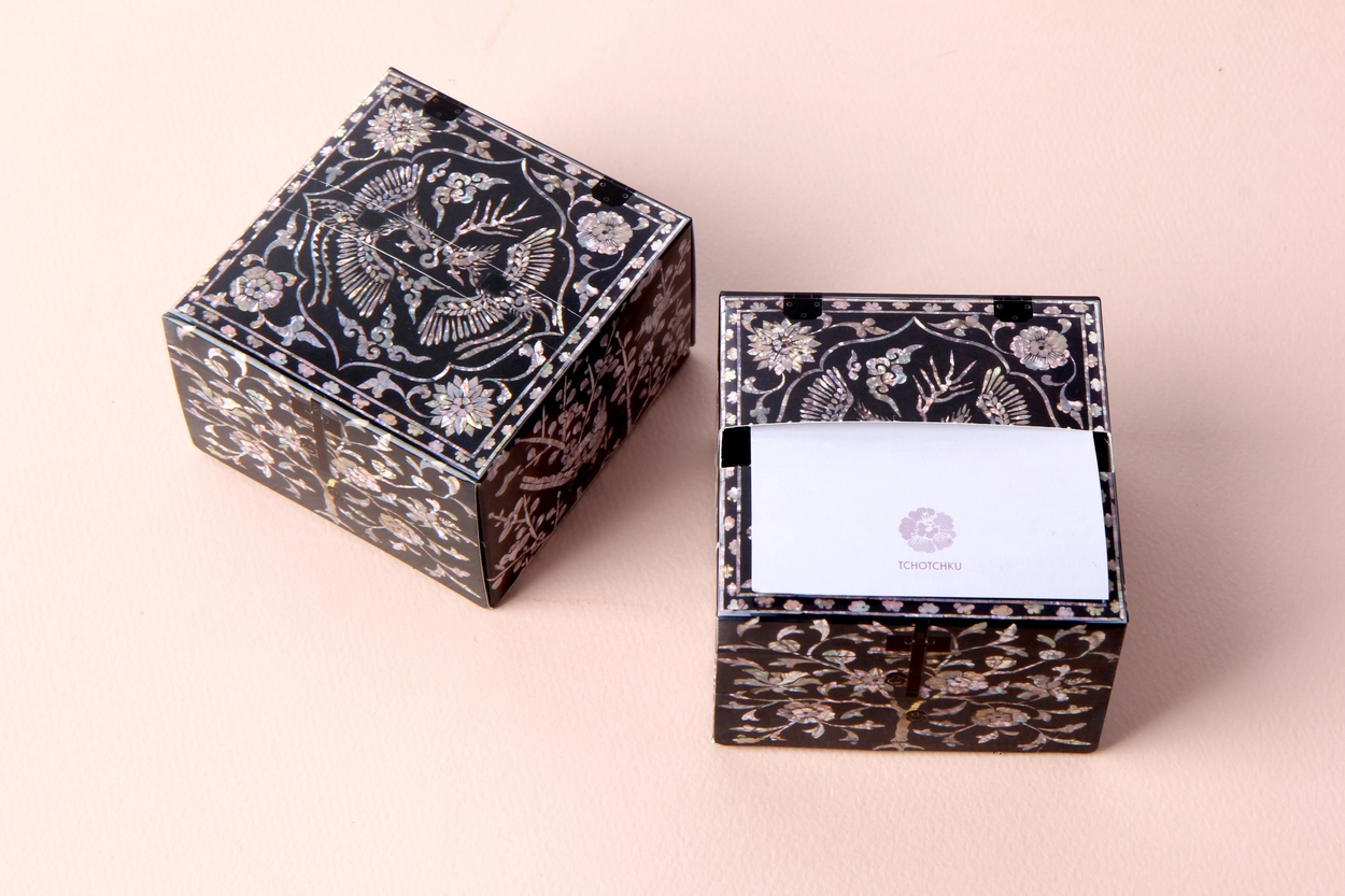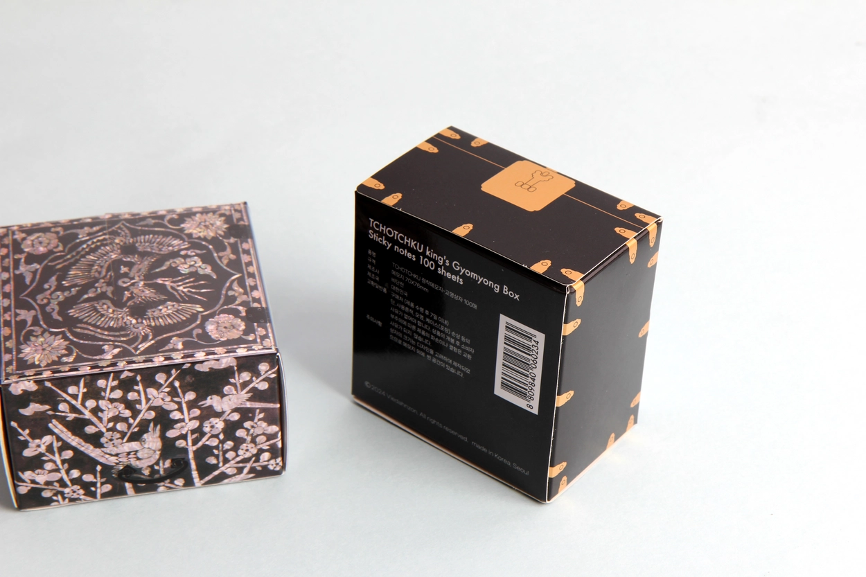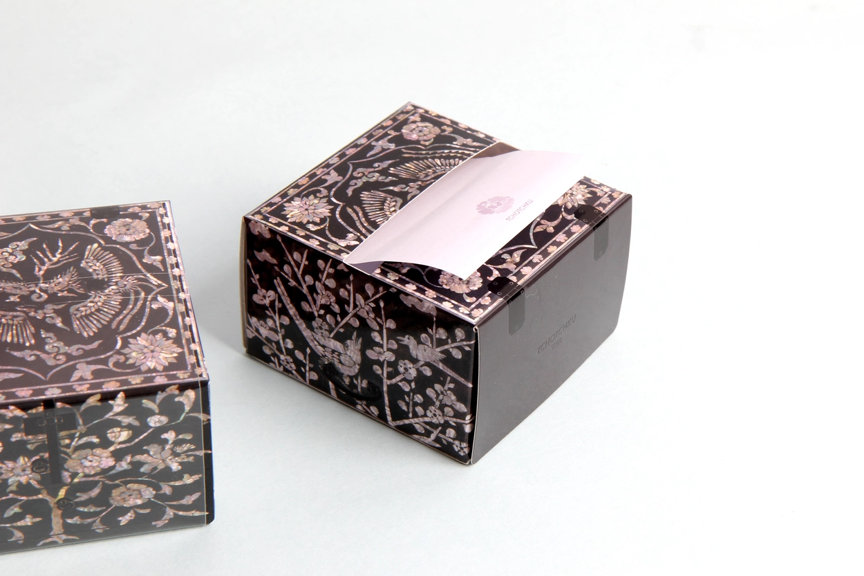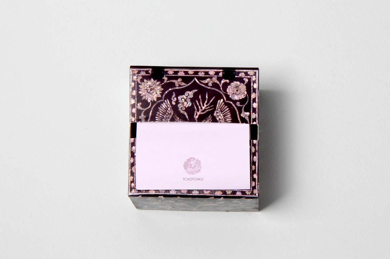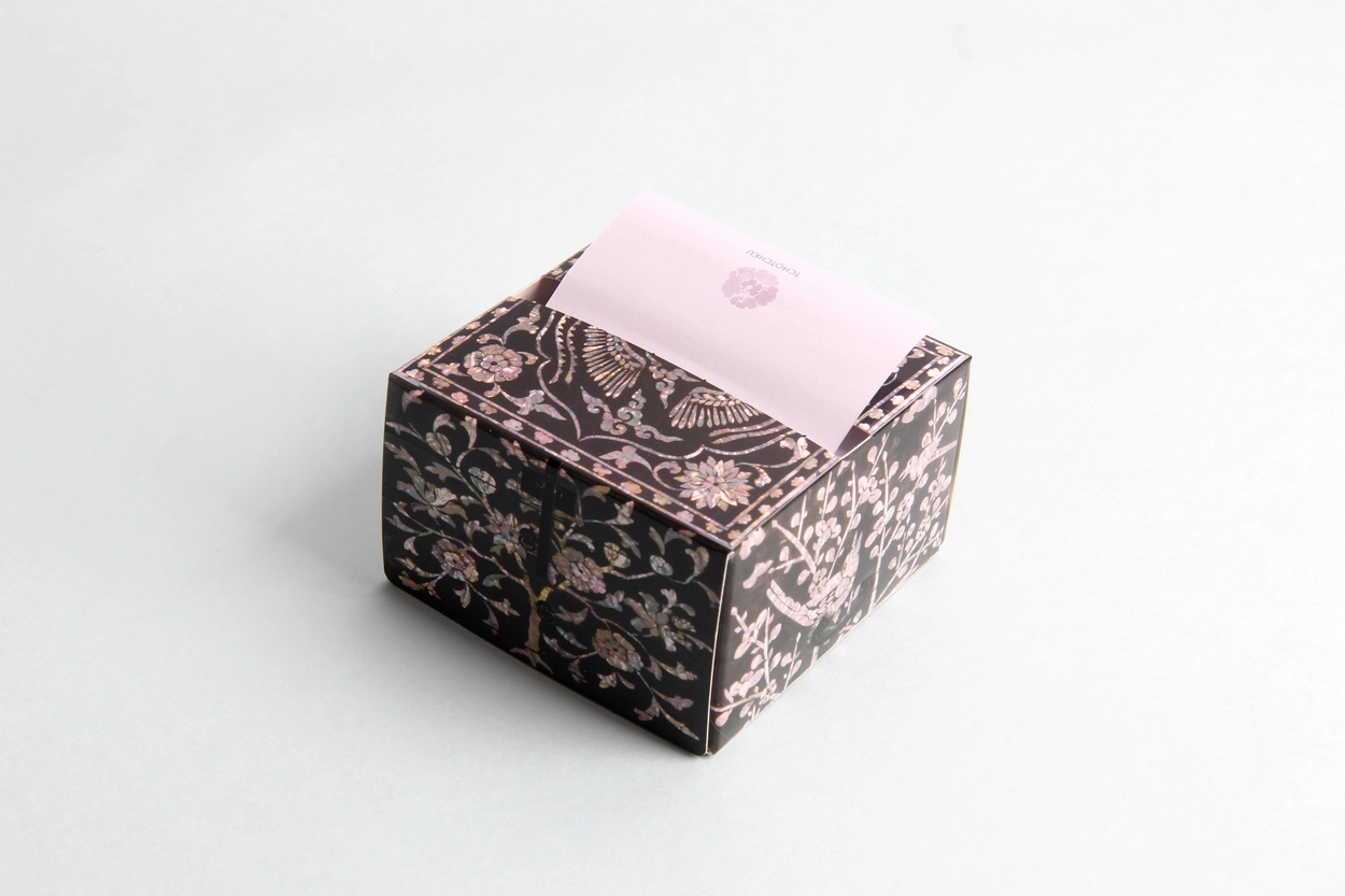 나전 봉황 점착메모지는 나전 칠 봉황 빗접을 활용하여 디자인하였으며 아름다운 나전의 질감을 살리기 위해 노력했습니다.