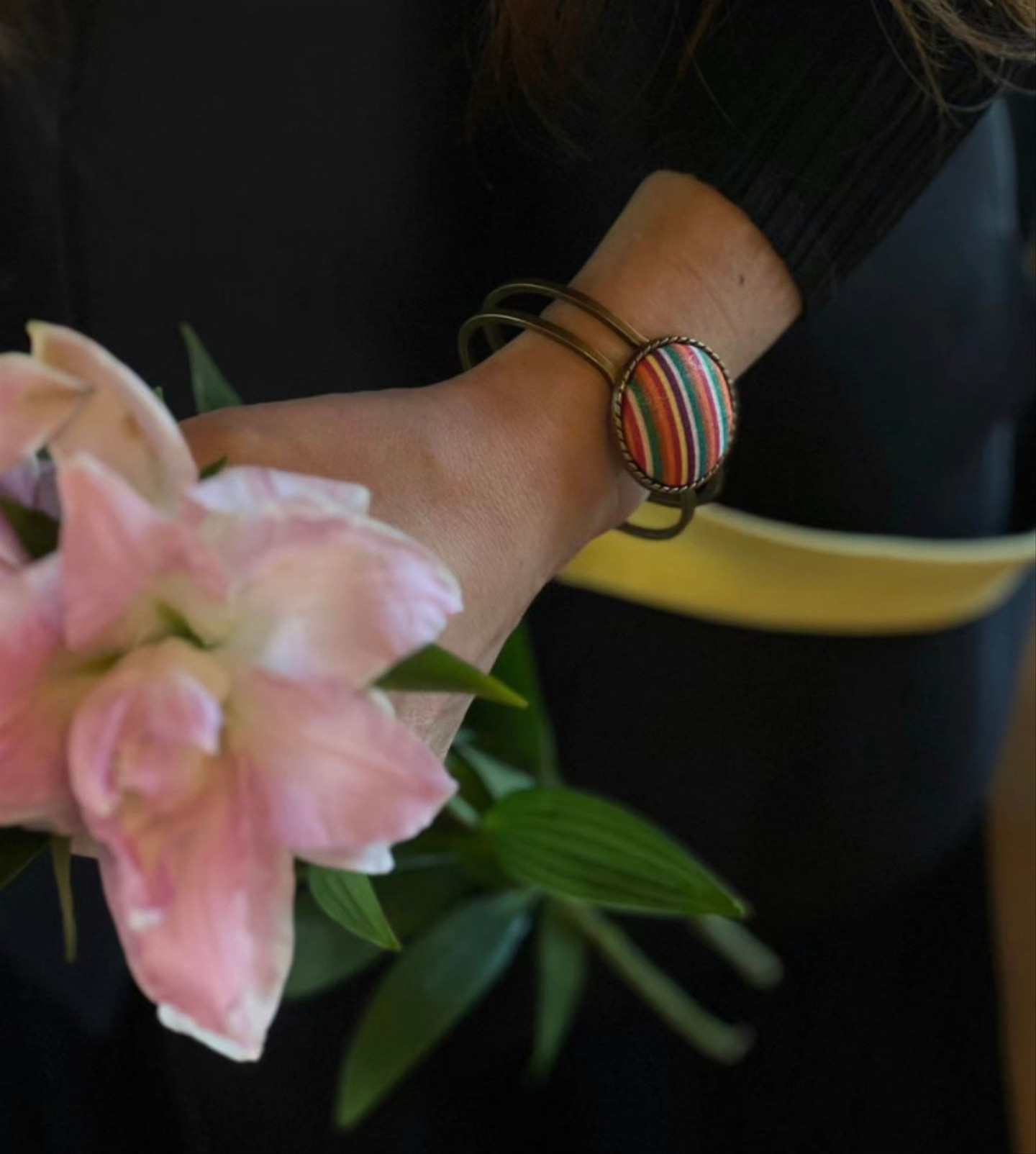 빈티지한 매력 속에 한국적 색동의 아름다움이 어우러진 디자인으로,